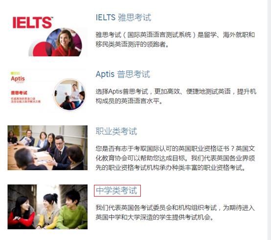 如果同学选择了中文,网页会变成中文界面,选择中学类考试,