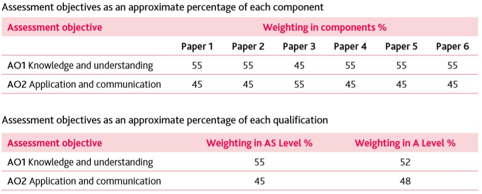 Assessment Objective评估目标分成了两个部分: